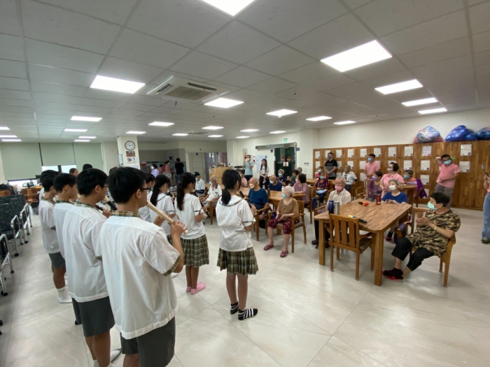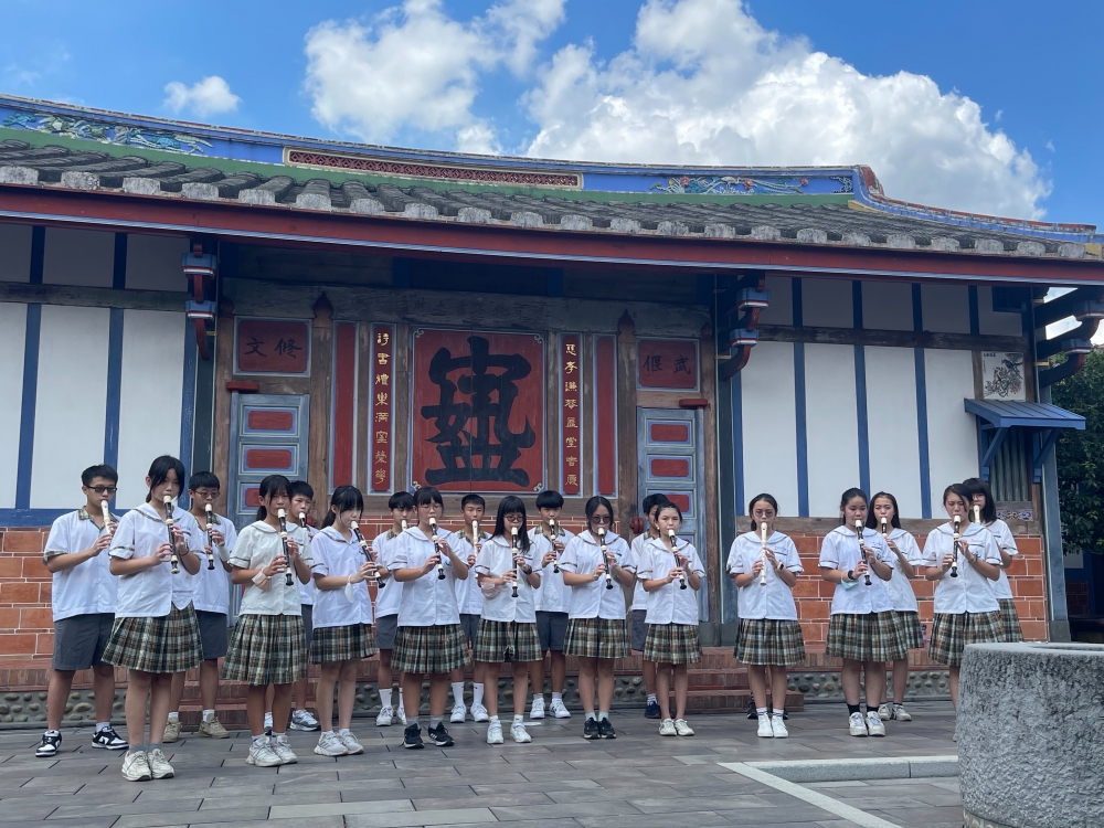 劉校長說,第一天的演奏快閃在鄉立幼兒園和成美文化園,前者是希望幼兒與國中大哥哥大姊姊交流,後者除讓遊客感受永靖學子的多元表現外,並藉在成美魏家古宅的﹁學好孔孟﹂獨創合體字(ㄎㄧㄤˇ)前演奏機會,體會孔孟核心精神。