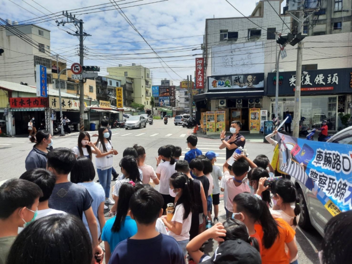 特別的是,清水警方為宣導行人交通安全,將小朋友實際帶到分局旁的十字路口,藉由現場車流狀況,宣導穿越馬路應走行人穿越道、不低頭看手機並注意來車等交通觀念。