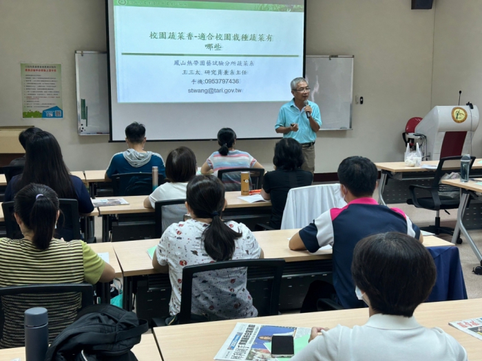 教育局長蔣偉民表示,市長盧秀燕重視教師增能,提升教師專業,有利學生的學習,為發展多元教學資源,此次課程由教育局與行政院農業委員會農業試驗所共同主辦。除教導學員認識適合校園栽種葉菜類與栽培要領,也體驗稻米生長、分級,選別、碾製,去雜、包裝、行銷等完整歷程,課程並安排蔬果簡易加工、保存技術及校園堆肥實作,以供學員更了解國內農業新興技術與觀念。