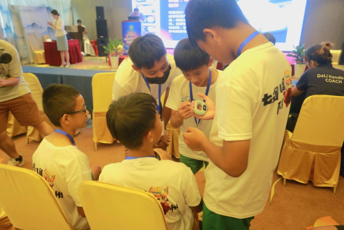 在開營活動現場,安排無人機創意表演,最吸引小朋友注意,精彩的表演,獲得許多歡呼;集體朗誦「科技助夢」,讓在場所有人都聽到年輕一代的科技夢。接著進行「人工智慧科普」講座,由福州市科協黃進老師主講,共同探討、暢想人工智慧與科創未來。
