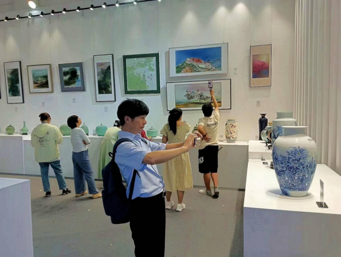 最後由中國陶瓷工業協會理事長杜同和宣佈巡展開幕,接著參加的來賓一起合影、並進入會場參觀。