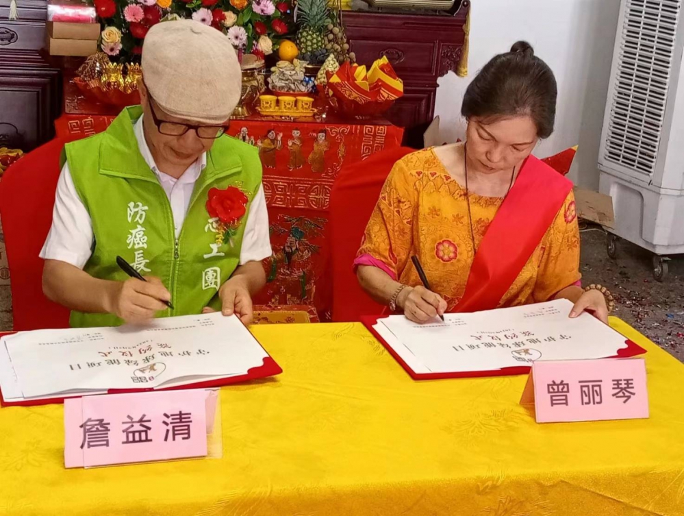 最後由曾麗琴、朱王碧玉、郁慕明、曾通、廈門道教協會秘書長蔡啟煥,一起為項目啟動剪綵;朱王碧玉與郁慕明為「中華慈姆家園」揭幕。