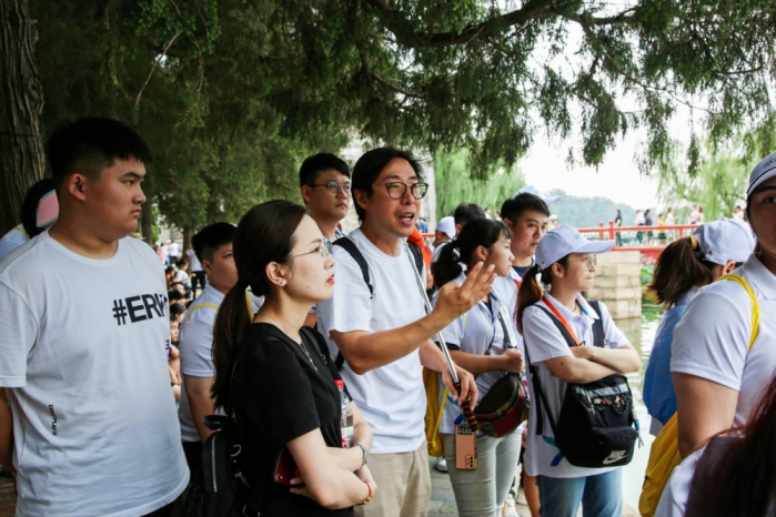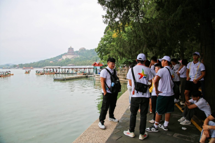 「向晚入頤和,日暮蘊清歌」,營員們首站就來到了頤和園,體驗皇室避暑勝地之清涼。頤和園前身是清漪園,為古代皇家園林,為了與山水無界互賞,乾隆採擷江山風物,打造了此座皇家行宮御苑。