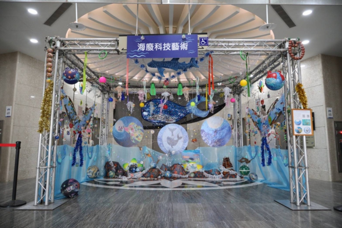 而策展人許玉音博士也帶領社區民眾以海廢再利用共同創作,藉由佈置漁網(台語:希望)、彩繪手作擬真的珍貴大安水蓑衣並搭配節能LED燈一起點亮戶外科技藝術作品,並設置科技感應裝置,透過Web AR擴增實境場景,呈現美人魚拯救鯨豚與魚群共舞,白天及晚上欣賞各有不同風情,希望與民眾一起響應愛護海洋生態資源。