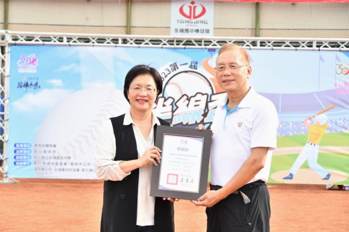 頂新基金會副董陳慶浩感謝縣府團隊和各級民代,用棒球行銷永靖,希望透過棒球運動,讓永靖﹁勇敢前進,永遠有勁﹂。