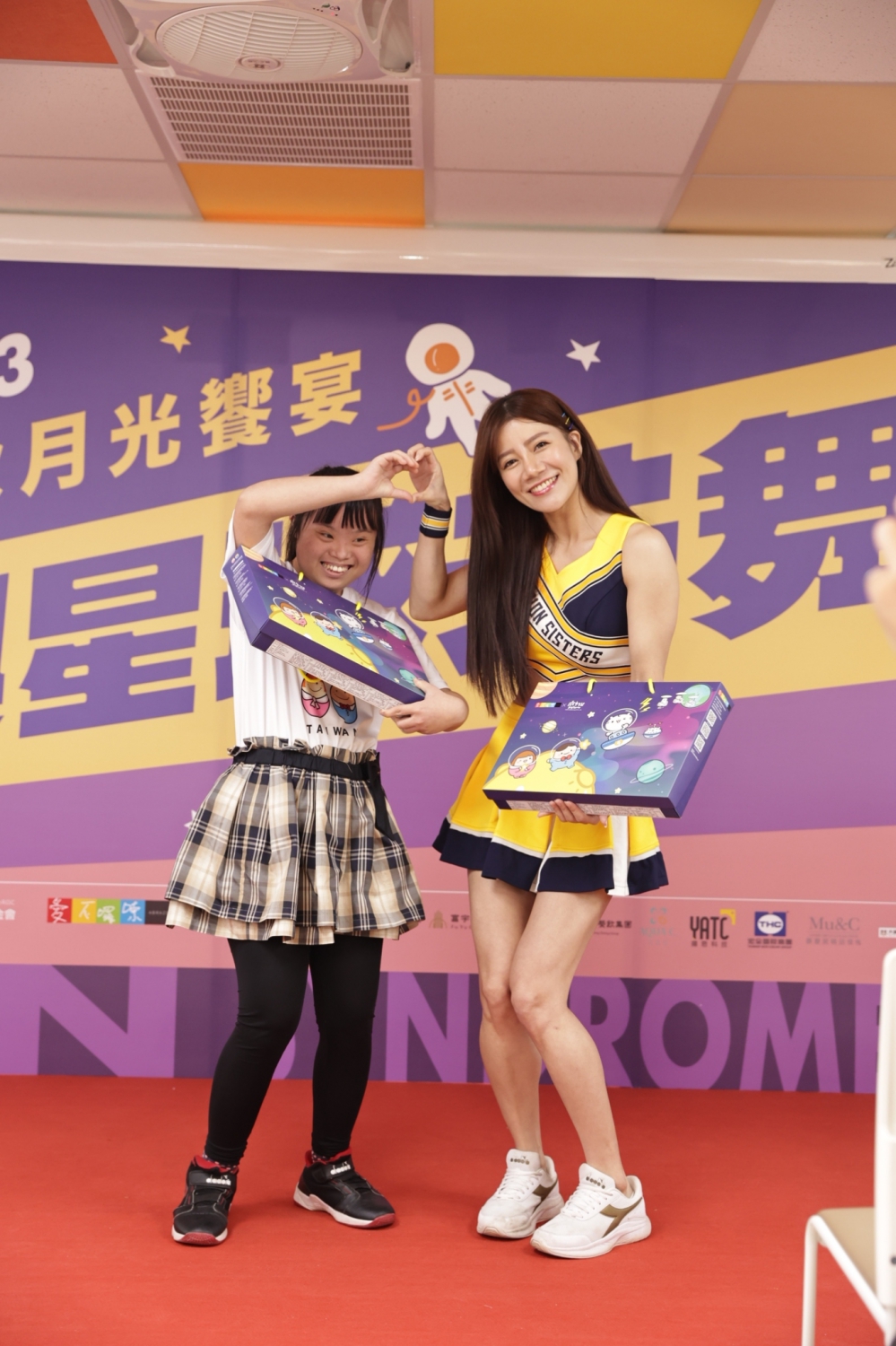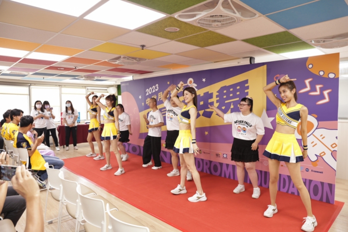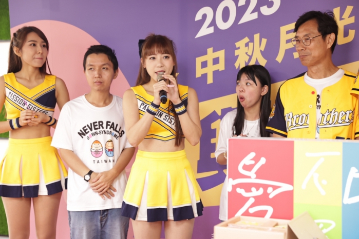 唐氏症基金會中區服務總部21日舉辦「與星球共舞」2023中秋記者會,中信兄弟職業棒球隊球星鄭浩均、王政順與PS女孩廖小安、貴貴、Peggy、白白一同聯袂出席。開場表演即由唐寶寶和PS女孩一同熱舞演出中信兄弟應援歌曲《連霸黃潮》,火力全開為中秋公益禮盒一起加油。難得有機會能和職業球隊啦啦隊一起演出的唐寶寶小柔直說,「好棒啊,今夜作夢也會笑」。