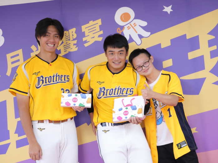 【記者林獻元台中報導】中秋節即將到來,唐氏症基金會今年透過唐氏症畫家楊茹婷的作品元素,以《與星球共舞》為題,用「夢想繪本」為主軸,推出多款中秋經典限量禮盒,希望唐寶寶的畫作能在中秋送禮市場被看見。中信兄弟的聯盟本土勝投王鄭浩均、今年表現亮眼的內野手王政順,以及中信兄弟啦啦隊PS女孩,一同閃亮登場,為唐寶寶中秋禮盒產品站台,邀請大眾以行動來支持,無論自用送禮或響應送愛活動,希望讓每一份購買皆成為鼓勵唐氏症青年認真與努力的動力。
