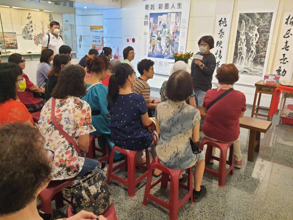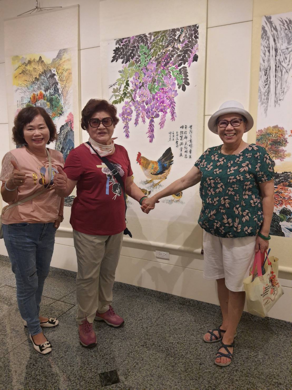 易老師說,聯展不老畫友是周惠美、張含笑、張洲文、巫碧琴、黃月女、黃美蓮、黃玉仙、賴秀珍、賴玉瑞、邱貴卿、莊震、林麗雲、張慧芬。