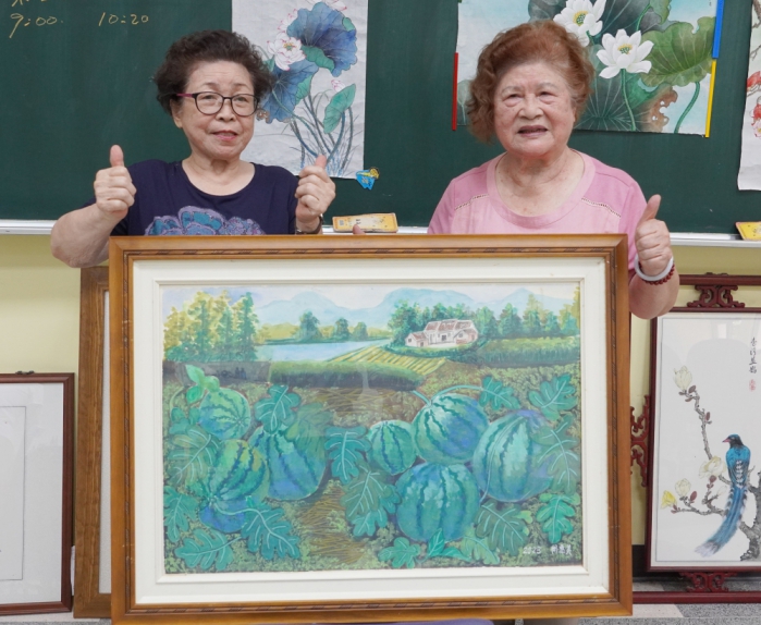 指導的易映光老師說,繪畫班學生多半是住在員林地區的退休老師或公教人員,平均年齡76歲,最年長84歲,每星期三群聚在大葉推廣部教室,以開心的嗓門兒說話,以靈動雙手繪圖,用智慧觀賞,畫出以水墨為主題的山水、花鳥世界。