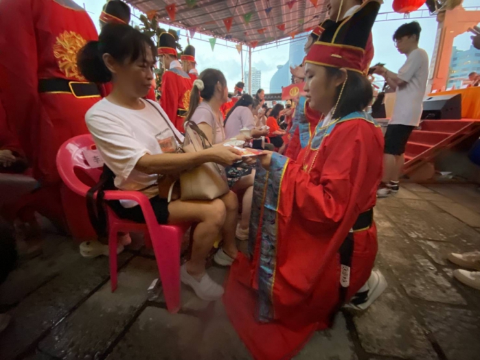 今年的活動中,經廈門印聯會引薦,有8位印尼籍青少年參加活動,他們有專程從印尼趕來出席活動、有歸僑三代、有在廈留學生。來自印尼北蘇門答臘島棉蘭市,現在在華大讀華文教育專業的蘇俐頻祖上泉州,在印尼時就聽長輩說起泉州府有這個人生禮俗,但沒有見過這個習俗的儀式。