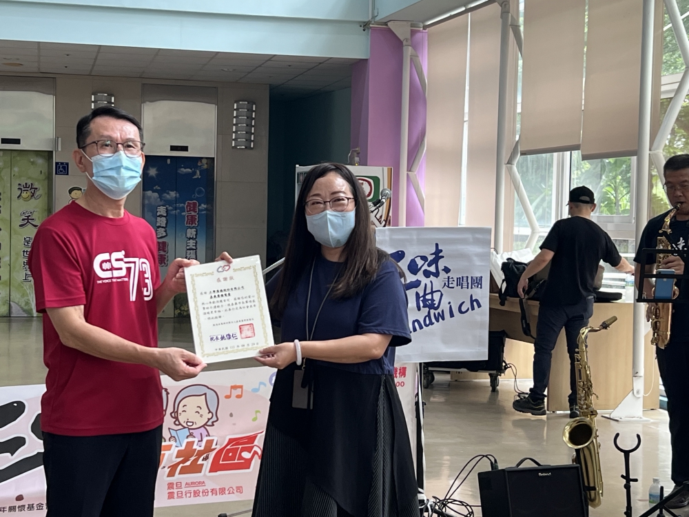 【記者張文一嘉義報導】正聲廣播嘉義電台「聽見夢想的聲音~聽你聽我-三味曲瘋社區」系列公益活動最終場,24日(四)前往嘉義市長青園,除了由中正大學盧鴻毅教授、樂齡音樂活動規劃師陳玫君、歌唱教學講師李國賜所組成的「三味曲走唱團」,透過歌曲與長者同樂外;「3指歌手」蔡佩芙也用精彩的歌聲與長輩分享自身的生命故事,激勵長輩肯定自我的生命與社會價值。此次活動同時結合漢儒文教基金會、華儒青年關懷基金會、允統食材有限公司及震旦行股份有限公司共同成就社會的愛與關懷。
