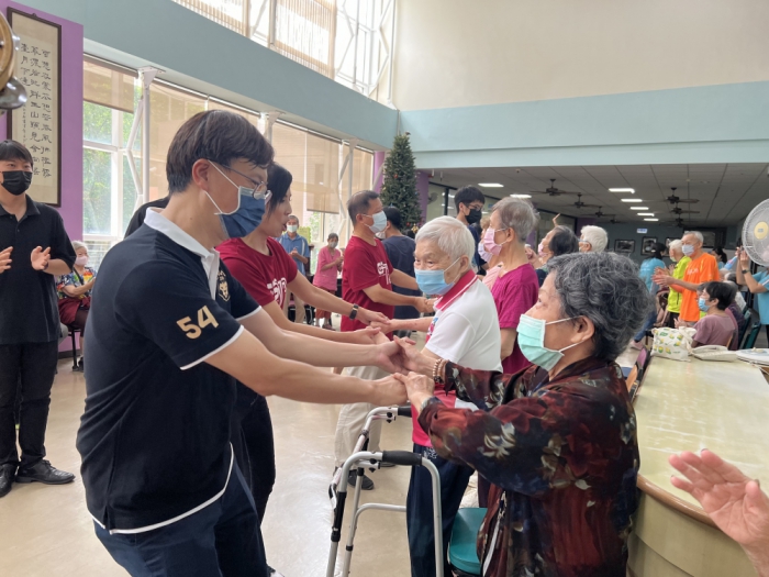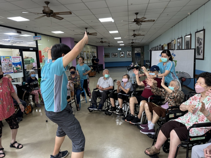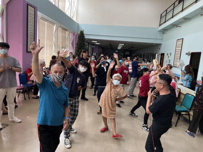 長青園公益活動最終場以說說唱唱開啟活動的序幕,「三味曲走唱團」以歌敘情,透過歌曲的氛圍,鼓舞長輩勇於表達人生歷程的酸甜苦辣、肯定長輩的人生智慧;活動同時邀請嘉義市殘障者服務協會的「3指歌手」蔡佩芙,以嘹亮、自信的歌聲與長輩同樂。