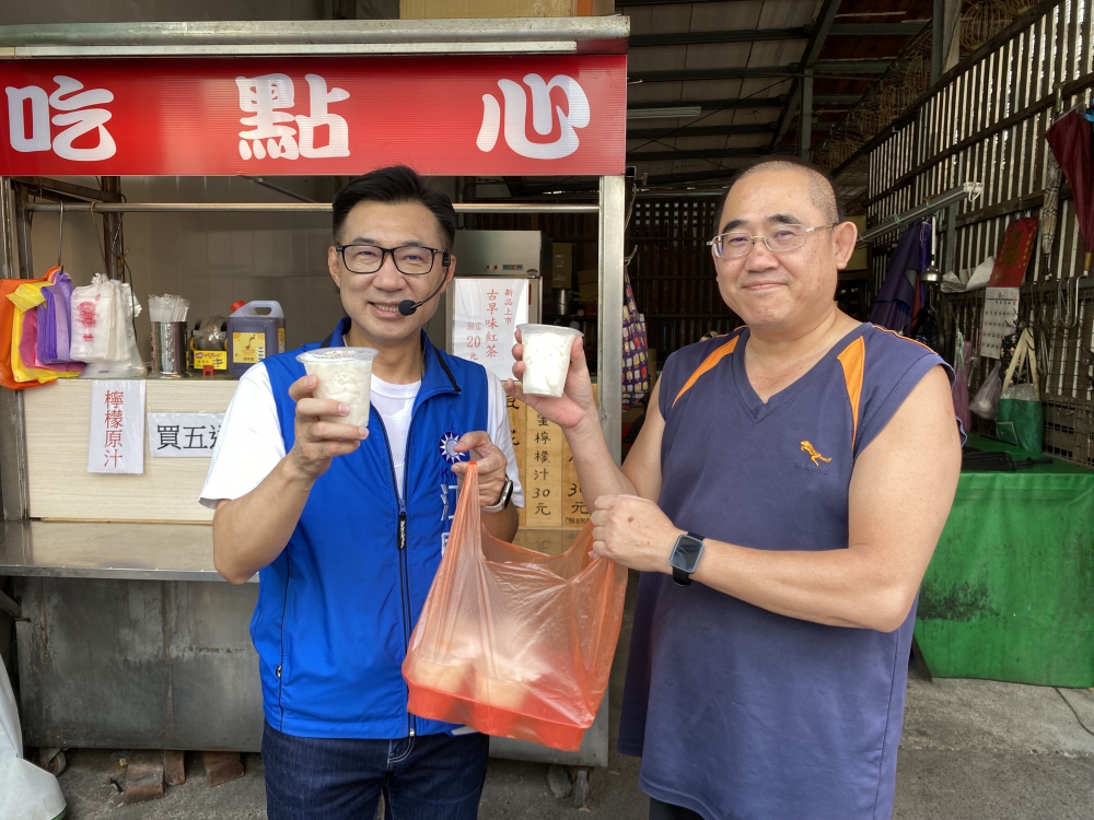 【記者林獻元台中報導】立委江啟臣2日上午在台中市議員吳振嘉、前市議員蘇慶雲的陪同下前往東勢菜市場掃街拜票。現場氣氛熱絡,凍蒜聲此起彼落,更有熱情攤商致贈粽子,祝福江啟臣高票當選。掃街過程中,也有攤販貼心送上手工熬製的杏仁豆腐,不僅慰勞辛苦的競選團隊,更鼓勵江啟臣勇往直前、高票連任!