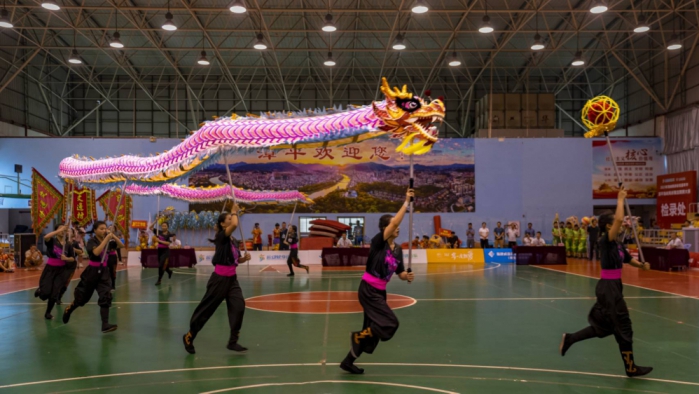 比賽設南獅、北獅、舞龍3個大項,自選套路、傳統套路、高樁自選套路3個小項。比賽現場氣氛熱烈,每個隊伍各顯十八般武藝,輪番上陣,戰況如火如荼。