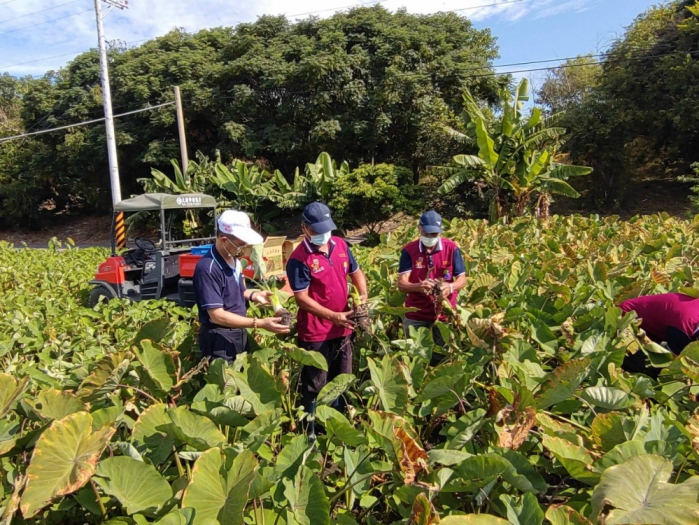 除了發展共同運銷外,農會也輔導農友溯源農糧產品追溯條碼及產銷履歷驗證,且為了擴大行銷,也將芋頭積極研發加工品,如芋頭香腸、芋頭豬肉餡餅、芋頭豬肉水餃、芋頭排骨酥湯、芋燒酎等,並透過「飛天豬」品牌共同行銷、拓展通路,打開知名度。農友表示,農會不遺餘力輔導,未來也持續種植出好品質的芋頭,讓消費者吃得安全有保障!