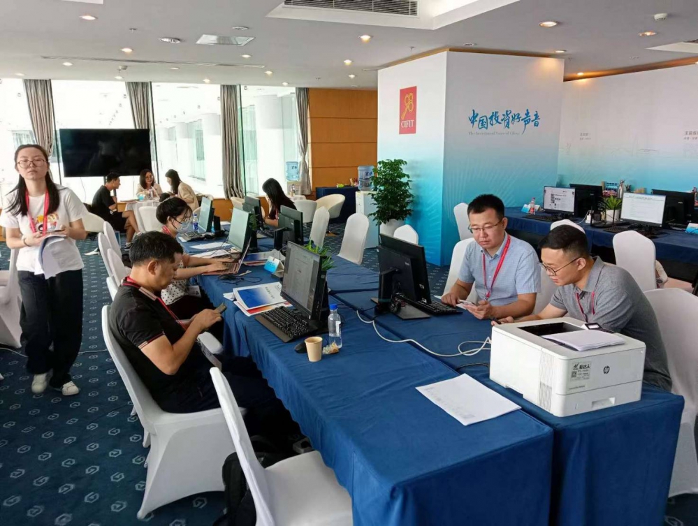這屆投洽會,主辦單位在國際會展中心C3館403室,開闢2個記者辦公區,設有開放式空間,安排有電腦、影印機,供記者寫稿、發稿、影印;還有休息區,提供咖啡、餅乾,中午還提供便當,服務周到。