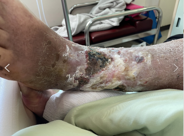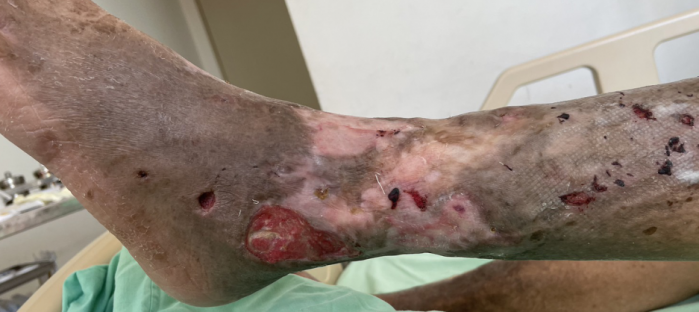 【記者林獻元台中報導】57歲王男性有高血壓、糖尿病、慢性腎臟病,因左下肢潰瘍逾15年,每次左下肢下床伸直時,傷口疼痛難耐,求醫15 年未見改善。豐原醫院血管外科張耀中主任施以左下肢膝膕動脈繞道手術後術後動脈血流灌注恢復良好,配合高壓氧治療後約三個月左右,傷口癒合良好。