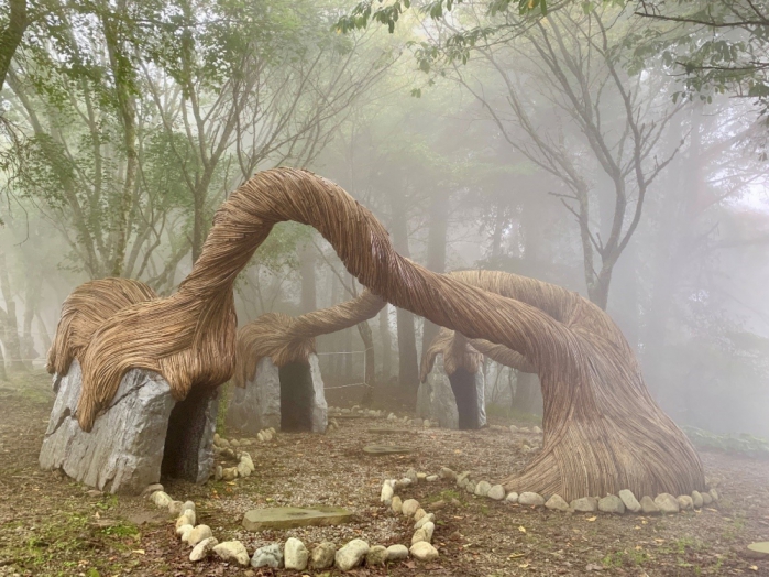 作品中以藤材編織月形椅象徵月熊(臺灣黑熊),周圍地面鋪上刻印各種野生動物腳印的石板,來述說自然環境與萬物生命間的相連,表達著過去、現在、未來,萬物生命的相生相息。藝術創作置於大雪山國家森林遊樂區35K入口處,遊客在進入園區時,第一眼即可感受到有熊森林追求人熊和平共處的真諦。