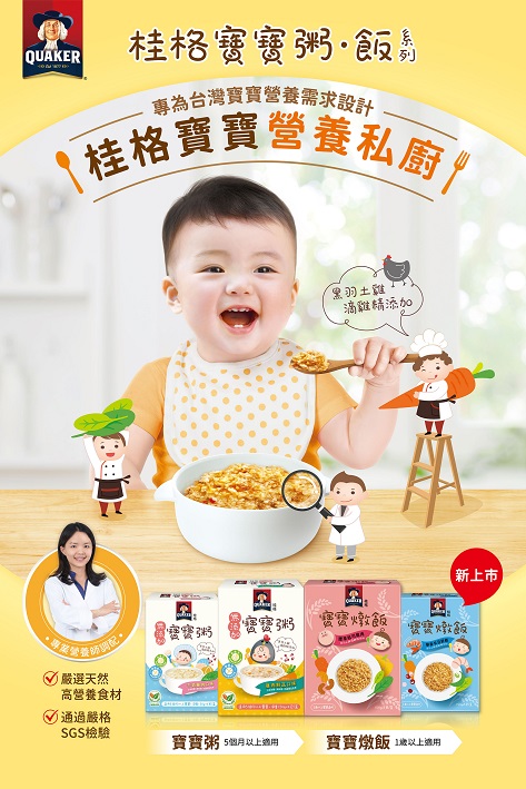 桂格作為嬰兒副食品的領導品牌,從熱銷榜排行第一的米麥精、媽媽圈廣受好評的無添加寶寶粥、加上全新上市的寶寶燉飯,全系列嬰幼兒食品全線到齊,讓爸媽從寶寶一出生到大月齡成長時期,都能擁有桂格安心的營養支援。