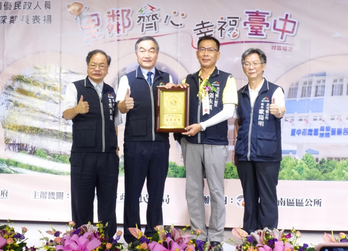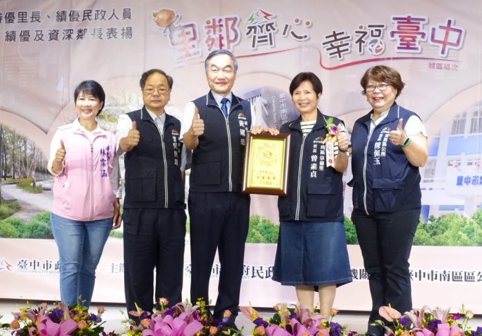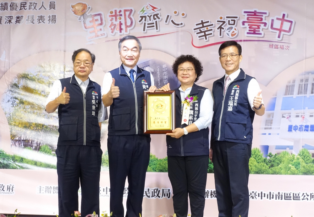民政局說明,台中市今年度舉辦4場(屯區、山線、海線、城區)里、鄰長及民政人員表揚活動,表揚全市55名特優里長、23名績優民政人員、911名績優鄰長及322名服務年資超過20年的資深鄰長,共1311人獲獎;感謝里鄰長及民政人員長期的辛勞付出及奉獻,期盼持續與市府齊心協力守護市民福祉,將台中市各項建設、福利、教育、文化等面向做到最好,打造台中成為幸福宜居的國際大城市。
