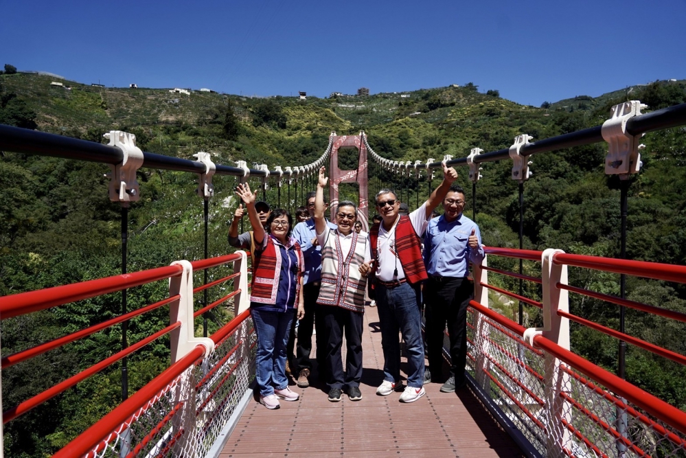 【記者林獻元台中報導】台中市長盧秀燕重視和平偏遠地區交通建設,編列經費5,750萬元,責成台中市政府建設局辦理「和平區環山部落南湖溪新建吊橋」工程,新建吊橋跨距約100公尺,全寬3.2公尺,工程於今年6月底完工,12日由建設局長陳大田代表盧市長主持完工啟用典禮,特別感謝部落宋進玉長老無償提供土地使用,提供地方安全便捷回家途徑。