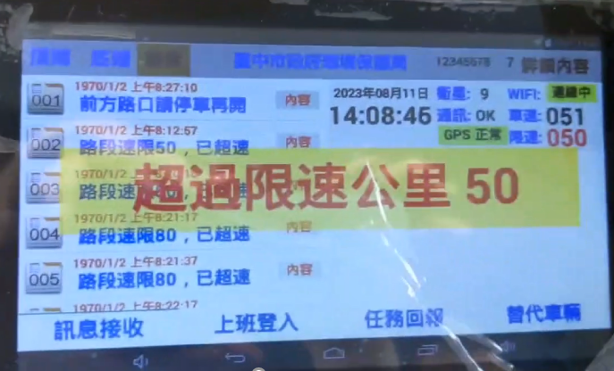 環保局長陳宏益提到,針對中市1999陳情電話曾接獲民眾反映垃圾車車速過快問題,透過管理及科技手段亦可逐漸改善;由清潔車上加載車機平板即時語音超速警示,可達駕駛人員通知預警:「你超速了!」,預計於年底前1395台清潔車輛全數完成;透過上述工具應用,並由隊職幹部採取輔導措施,車輛超速次數已明顯降低,也讓司機了解多一分減速、即多一分行車安全。