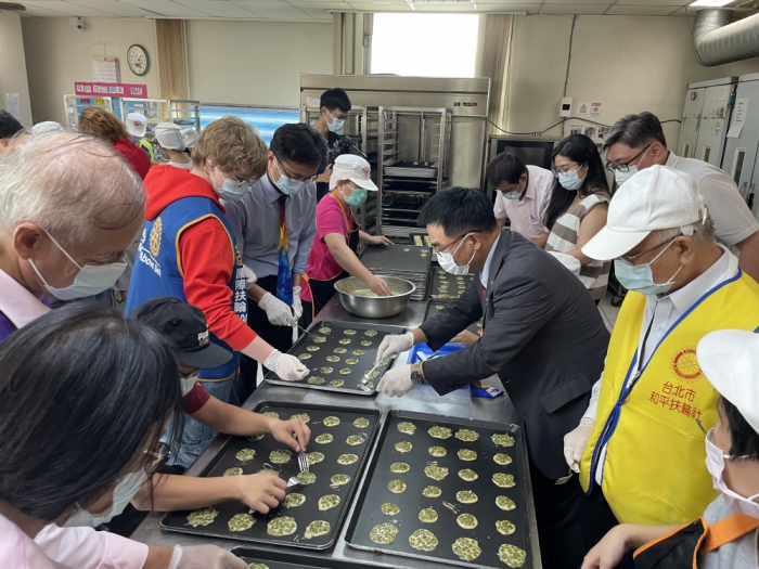 嘉市腦性麻痺協會烘焙坊設備老舊常故障 台北市和平扶輪社邀各友好社 捐款充實設施及更新設備 腦麻兒還以蛋黃酥精心製作扶輪社LOGO致謝