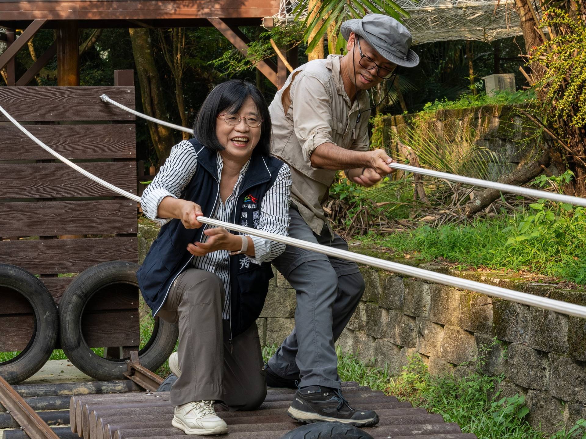 陳美秀呼籲,山林體訓設施適用年齡為13歲以上,請各位符合年齡的民眾,評估自身體能狀況後再參加,之後會將體訓設施教學影片做成QR Code連結,放至每一個設施告示牌旁,供每一位民眾體驗設施前,能夠詳細觀看使用說明,確保操作安全。