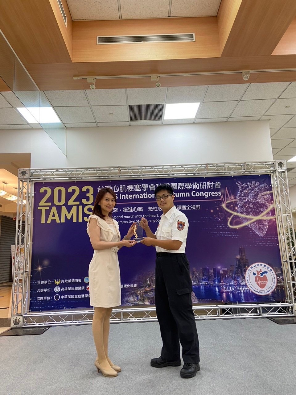 消防局也說,活動當日下午學會舉辦到院前心肌梗塞救護大作戰(TAMIS Got Talent),消防局代表隊由黎明分隊蕭俊傑、豐原分隊鐘冠傑及劉建佑組隊參加競賽,從33組隊伍中脫穎而出榮獲第2名佳績。