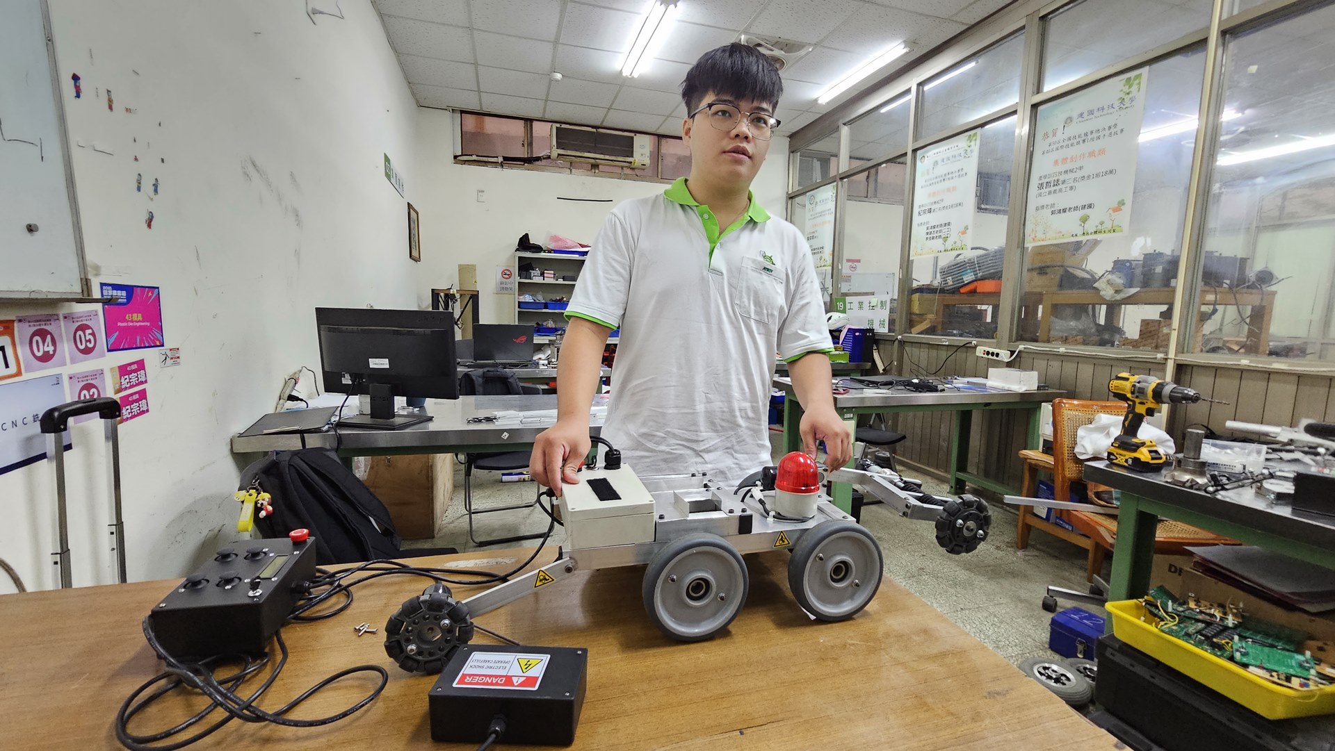 ▲黃奕翔是機器人系統整合職類的高手,以他對機械臂的高超操控技能,技壓群雄,獲得了國手的榮耀。(記者林明佑攝)