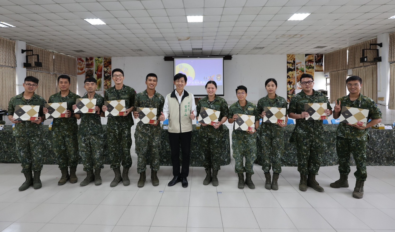 【記者鄭永德台南報導】為感謝國軍防疫之辛勞並祝賀官兵們中秋佳節愉快,今(21)日副市長葉澤山代表市長黃偉哲率團在臺南市軍人服務站長劉可雲、議員陳秋萍、黃肇輝、李鎮國、林冠維、楊中成、朱正軒、民政局長姜淋煌、永康區長陳勝楠、安南區長魏文貴、東區區長顏能通等陪同下,前往陸軍三九化學兵群慰勞國軍官兵,由陸軍第八軍團指揮官中將呂坤修、政戰主任少將王俊傑及三九化兵群指揮官羅斯鴻親自接待,感謝副市長蒞隊慰勞提升士氣,給隊上官兵們莫大的鼓勵。