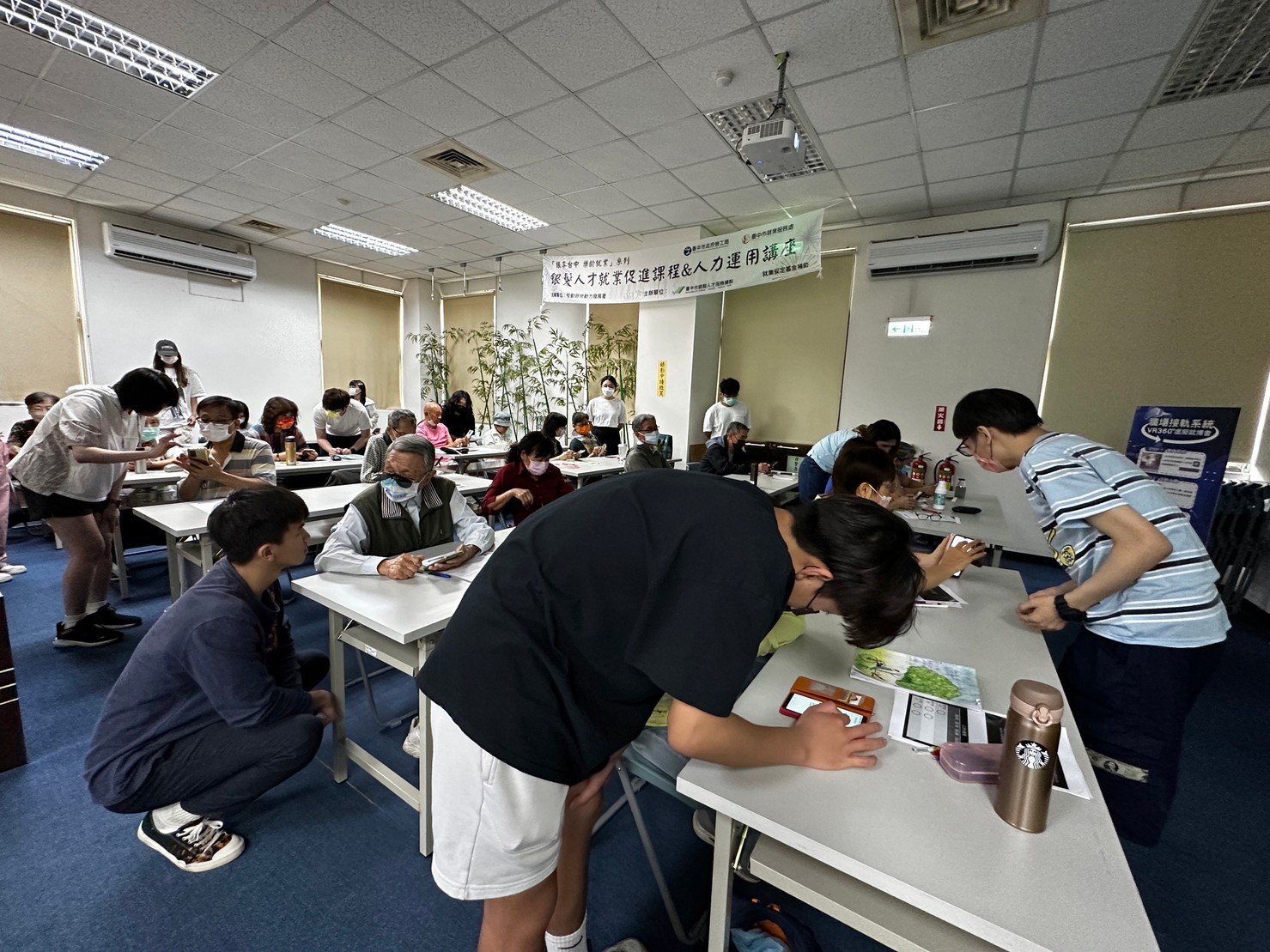 ▲東海大學學生擔任課程小助教協助銀髮長者熟悉手機操作。(勞工局提供)