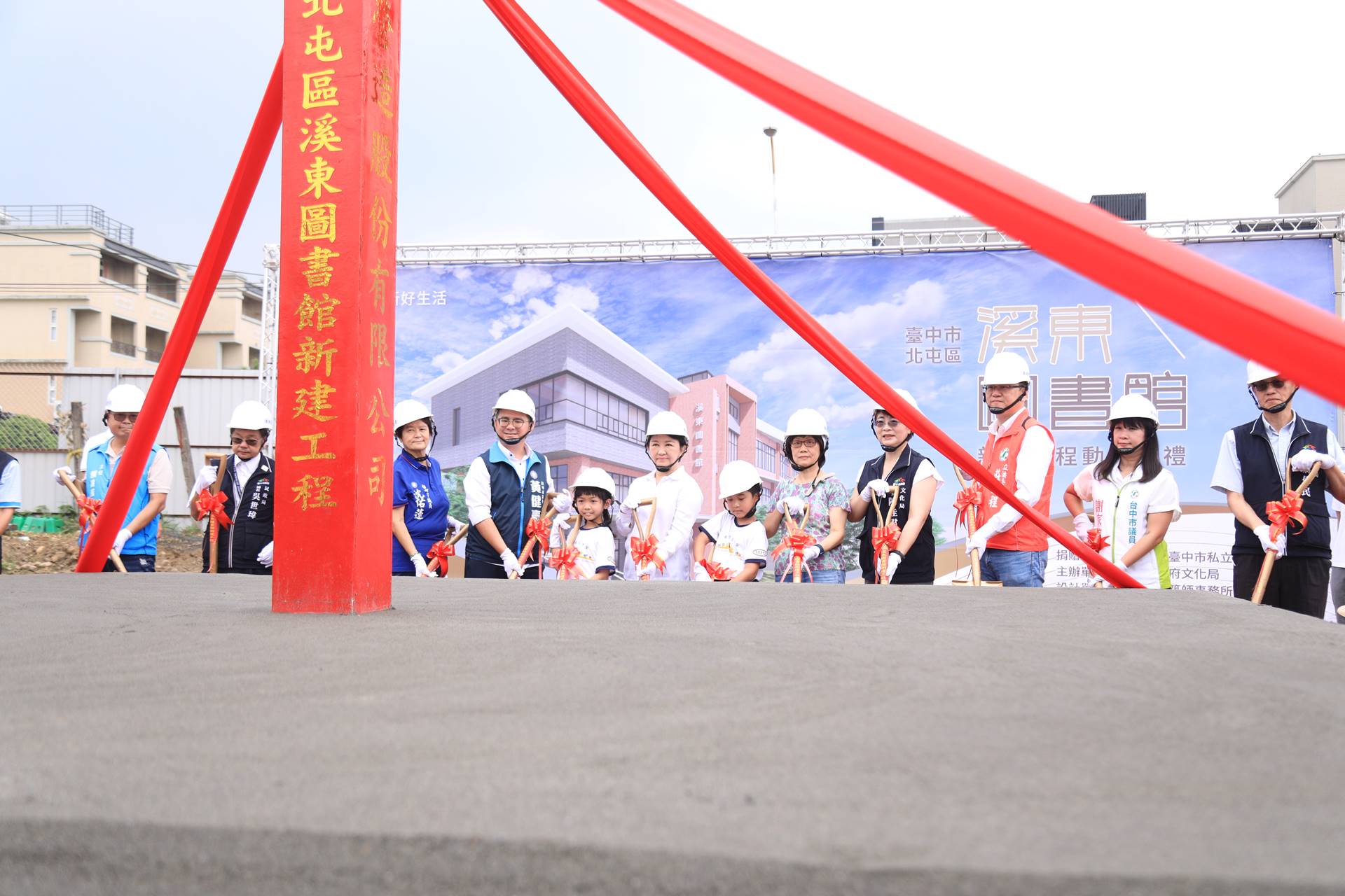 【記者林明佑/台中報導】 北屯旱溪以東首座圖書館開工!該工程總經費約1億8000萬元,由文英基金會捐贈1億4,080萬元、市府積極籌編預算興建。市長盧秀燕今(23)日出席動土典禮表示,北屯區第4座圖書館「溪東圖書館」由市府提供土地,感謝長期在全國推動文教公益事業的文英基金會協助經費,該座圖書館預計114年底完工、115年初開館啟用,滿足溪東民眾閱讀需求。