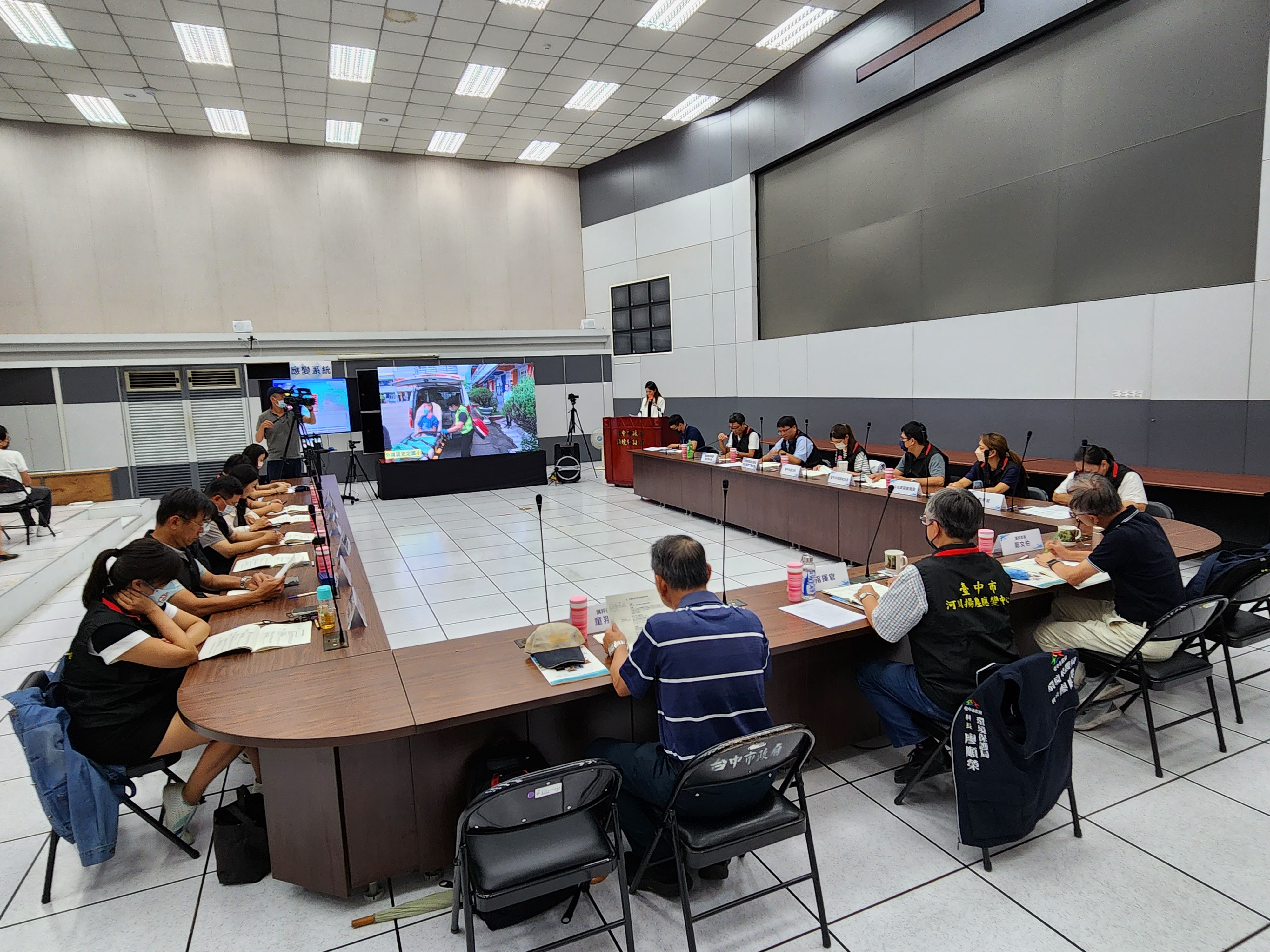 【記者林明佑/台中報導】 台中市政府環保局為因應河川揚塵好發時節,日前在文心第二市政大樓應變中心舉辦112年度河川揚塵應變防護演練,包含預警、輕度、中度及重度應變等級情境同步演出。環保局表示,今年以民眾行車安全及學童緊急救護情境實地演出,模擬民眾及學童於戶外受到河川揚塵影響,導致民眾行車受傷及學童身體不適需緊急救護情境逼真,並結合警察局及消防局配合執行,藉由增加演練臨場感讓各應變單位更加熟悉應變程序,提升河川揚塵應變即時性。