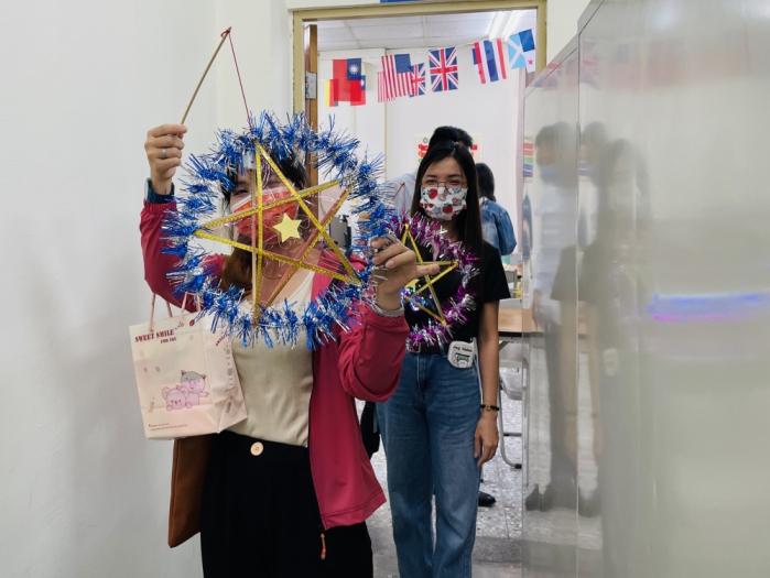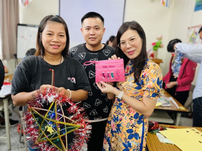 講師帶領學員用竹子製作星星形狀骨架,貼上七彩玻璃紙和彩帶,放入燈串後一起點亮燈籠,哼著越南人都會唱的「星星燈籠之歌」,在歡樂氛圍中體驗異國文化。