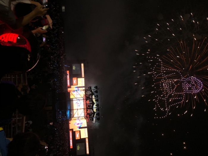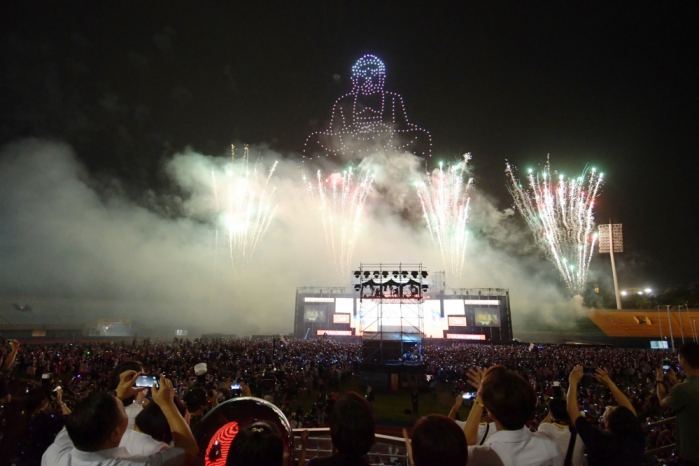 第一天活動吸引6萬人次觀賞,除演唱會表演外,晚會另一高潮是出動300台無人機,搭配480秒華麗璀璨煙火秀,以夜空為畫布,打造絢爛空中展演,透過無人機變化各種圖樣,訴說建縣300年成就。