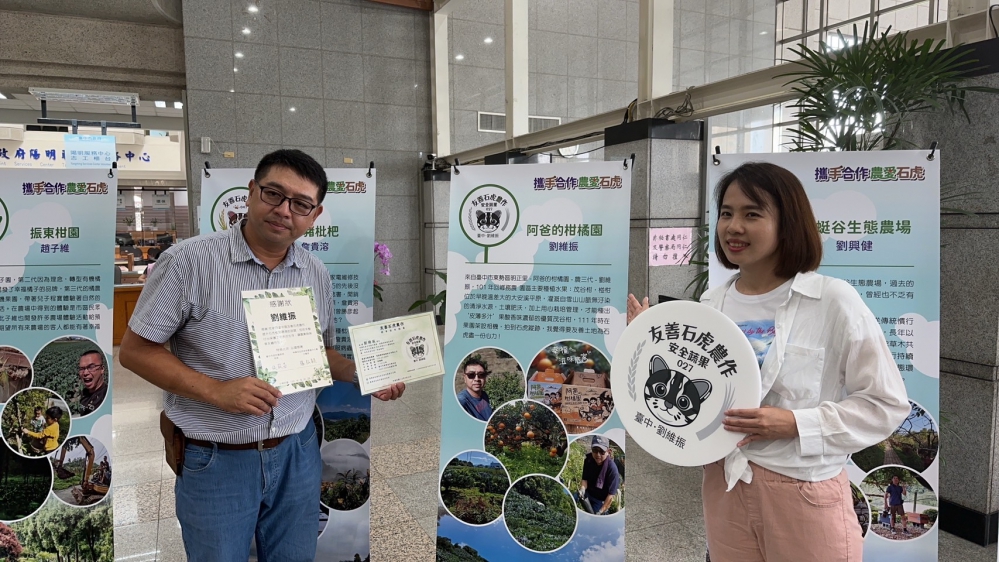 林業保育署臺中分署指出臺中市東勢區周遭位於石虎族群在南投縣與苗栗縣間交流的重要位置,為了推動石虎保育、串聯石虎關鍵廊道,111年於臺中市東勢區、石岡區、新社區等區域推動友善環境產業輔導,經過逐一向農友說明「友善石虎農作」標章規定及意義、協助申請農友之田區現勘、表單及問卷之填寫,19位農民手寫石虎問卷通過石虎知識大考驗後,終於通過標章認證,透由輔導過程農民將石虎保育理念融入到農事經營上,而農友在參與保育、營造友善野生動物環境的同時,也能兼顧經濟收益,讓人與石虎都能共存共榮。