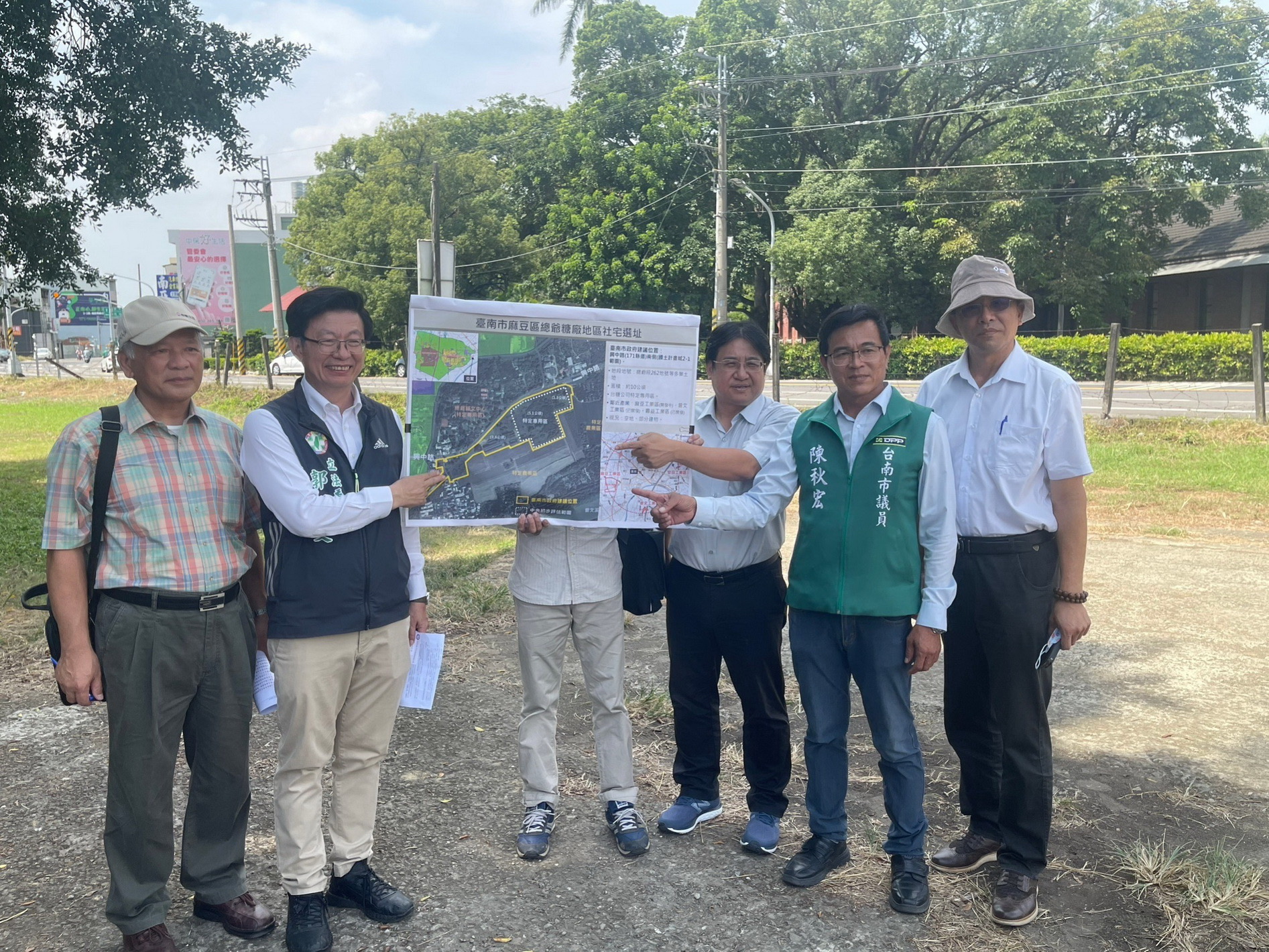 圖為立委郭國文邀請國土署署長吳欣修南下會勘麻豆區社會住宅基地選址。(記者黃永豐攝)