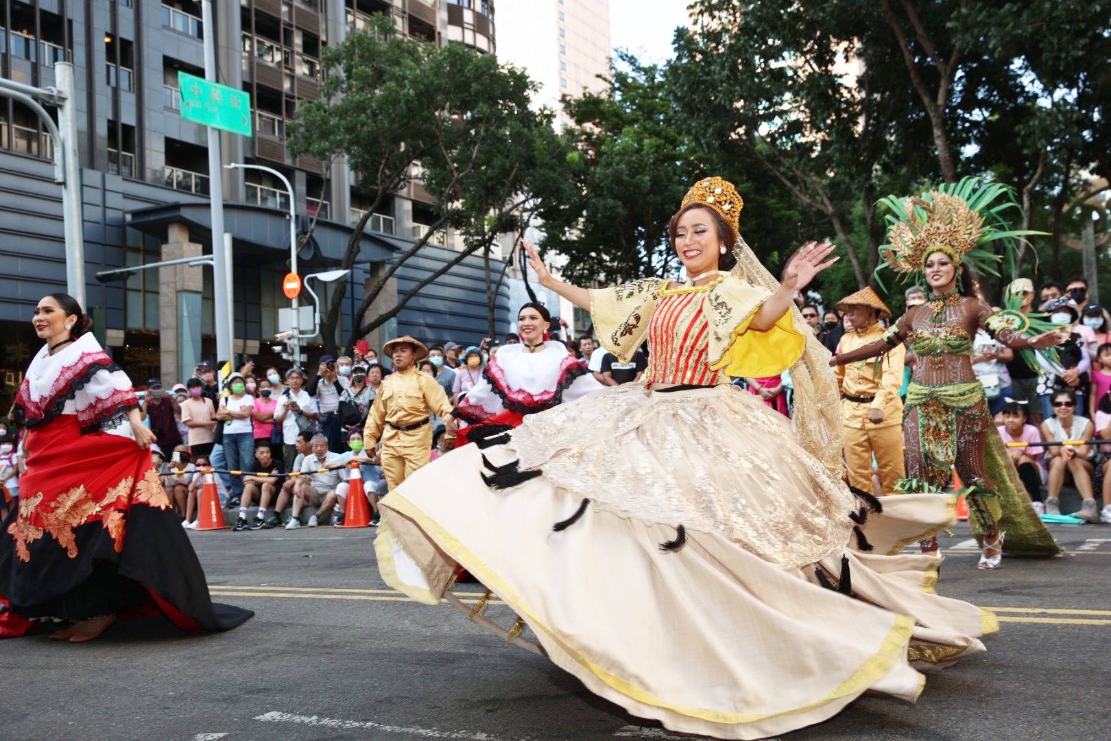 ▲台中國際踩舞嘉年華,菲律賓Kahayag Dance舞團踩街演出。(觀光旅遊局提供)