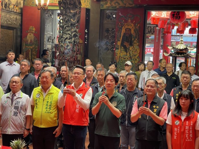 【記者林獻元台中報導】民進黨主席、總統參選人賴清德,10月1日前來台中北屯區軍福宮與松竹寺參香祈福,並推薦爭取連任的立委莊競程。他說,莊競程四年來沒有給鄉親漏氣,在立院的表現經公督盟評鑑為優秀立委,他的專業符合台灣國家發展需求。