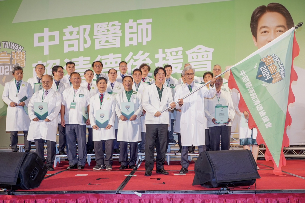 現場湧入將近千位醫師,特地穿上白袍,以具體行動表達「醫界挺賴醫師」的精神。賴清德到場時,眾人齊聲高喊「2024,團結一致」、「賴清德,凍蒜」,賴清德致詞時也特別穿上由後援會準備的白袍,現場可以說是白袍、旗海一片,場面十分熱烈壯觀。