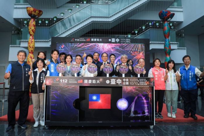 112年國慶焰火記者會,市長盧秀燕、立法院長兼國慶籌備委員會主任委員游錫堃、內政部次長花敬群、副市長王育敏、市議員陳政顯、羅廷瑋、邱愛珊、賴義鍠、劉士州、陳雅惠、黃健豪、謝家宜、前立委蔡壁如、慶籌會焰火處副處長潘興國及市府各局處首長均出席,市議員陳文政、林霈涵、黃馨慧、江和樹也派代表共襄盛舉。