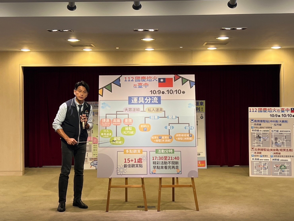 葉昭甫補充,市府在南北兩端也備有汽、機車停車場,自行開車的朋友,從國道1號(中清交流道)方向可進入經貿6及經貿8停車場停車後轉乘「水湳線」前往會場;從台74來的朋友,可至洲際棒球場停車場停車後轉乘「洲際線」前往會場,交通局也規劃國慶專用的機車停車場,北邊來的朋友可將車子停放在北側臨時機車停車區(港龍街、港順街及僑大六路(環中路-經貿九路間));南邊來的朋友則可停放於創研21停車場,停好車後步行即可抵達會場,但停車空間有限,建議搭大眾運輸來看焰火更省時便利。