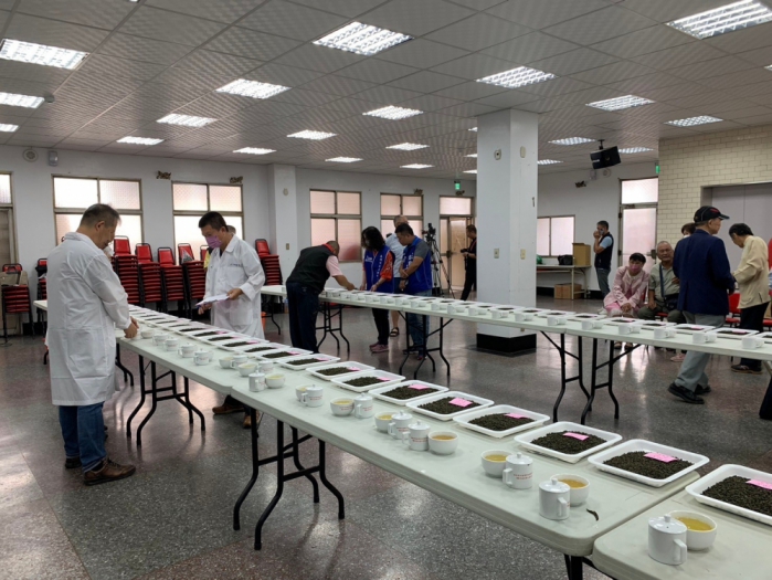隨後在2樓禮堂舉行初賽評選,超過150位競爭茶農參加評比,初賽結果入選60名參加決賽,下午即進入決賽評選,台灣高山茶茶王評選結果將於10月中旬公布,得獎茶葉將於11月份舉辦的第八屆媽祖文化論壇期間送至湄洲媽祖祖廟進行供奉展示。