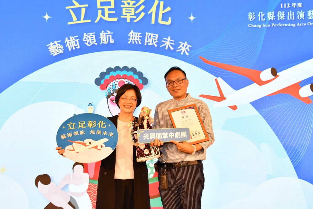 〔記者周為政彰化報導〕有六十二年歷史的「光興閣掌中劇團」,以優異劇場製作的「大俠百草翁前傳」,在第34屆傳統戲曲「傳藝金曲獎」的頒獎典禮,獲選「年度評審團獎」,王縣長認係光興閣近年來努力和創新的肯定。
