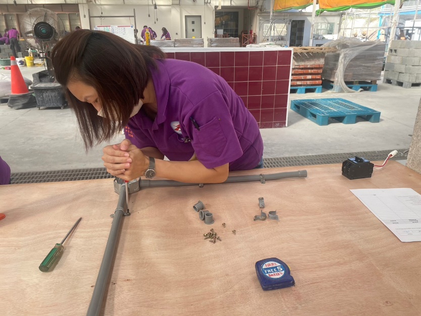 小如發亮的眼睛分享著參訓經驗,透過中分署紮實的訓練課程,從工程管理必備的視圖、估算、工地綁鋼筋、搭模板到泥作與水電,兼顧理論與實務的訓練,加上結訓前分署為學員辦理廠商媒合與推介,讓她一結訓就受到廠商青睞成為工地監工,與先生並肩在營造業打拼,打破女生不適合在工地的刻板印象,自信地穿梭在鷹架當中。