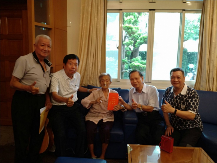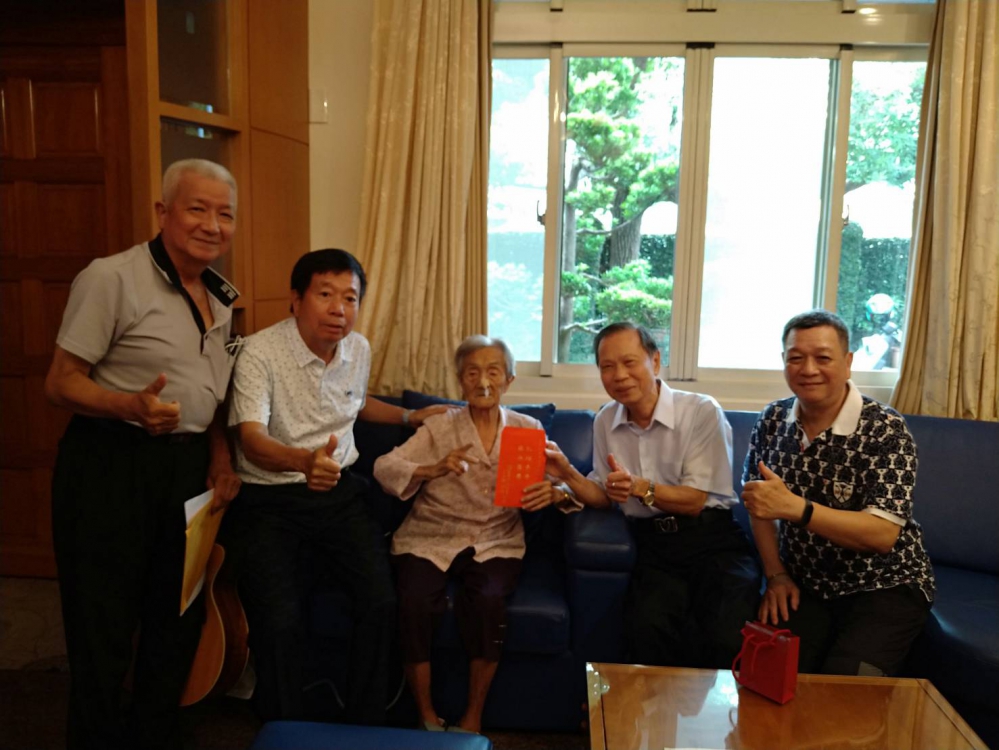 另一位103歲的黃江犁,幾個月前因為壓迫神經手術,頸部裹著護罩,聽到蕭清杰到來,由兒孫扶著走到客廳,見到蕭董事長立即開懷說,不好意思。