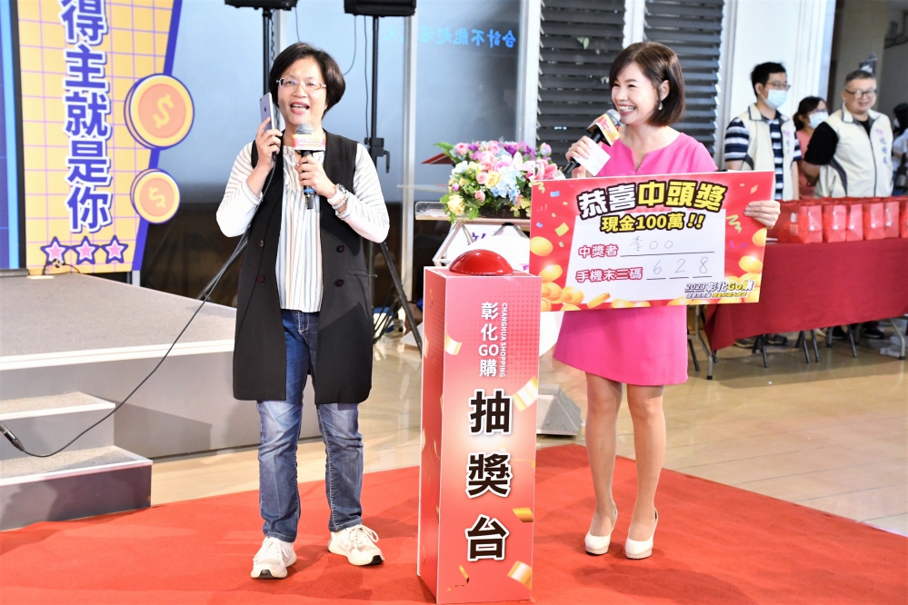 王縣長說,「2023彰化GO購」抽獎從7月1日起跑,3個月期間登錄消費金額突破10億,頭獎100萬元得獎者是和美鎮李先生,他在全聯消費486元,登錄抽中。