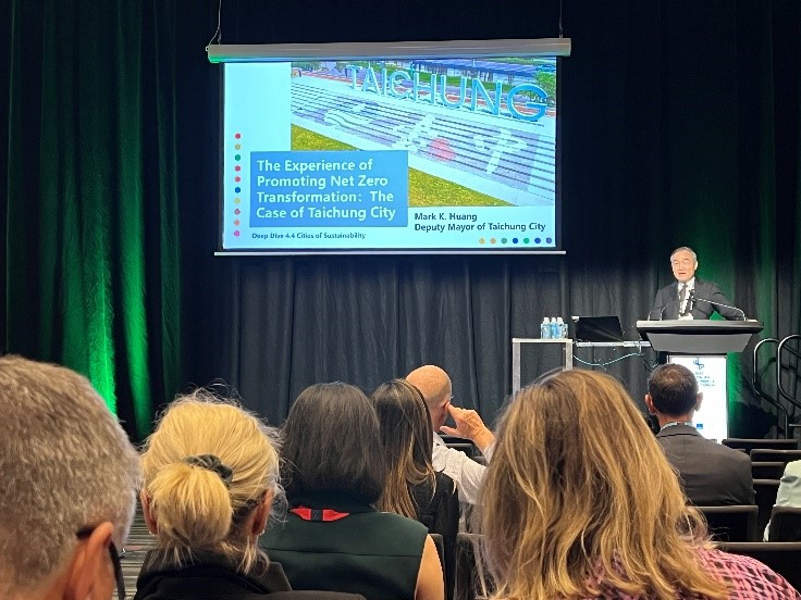 秘書處說明,黃副市長於「城市的永續」座談會中,以「推動淨零轉型相關經驗—以台中市政府為例」為題發表演說,與布里斯本副市長Krista Adams等產官學界代表,分享台中永續發展願景及城市治理經驗與成果,深獲與會人士肯定;黃副市長於演說中說明在氣候變遷的挑戰下,台中市如何與全球共同響應「2050淨零排放」目標,除政策制定與執行外,更積極發展與鄰近7縣市合作,成立「中台灣區域治理平台」。