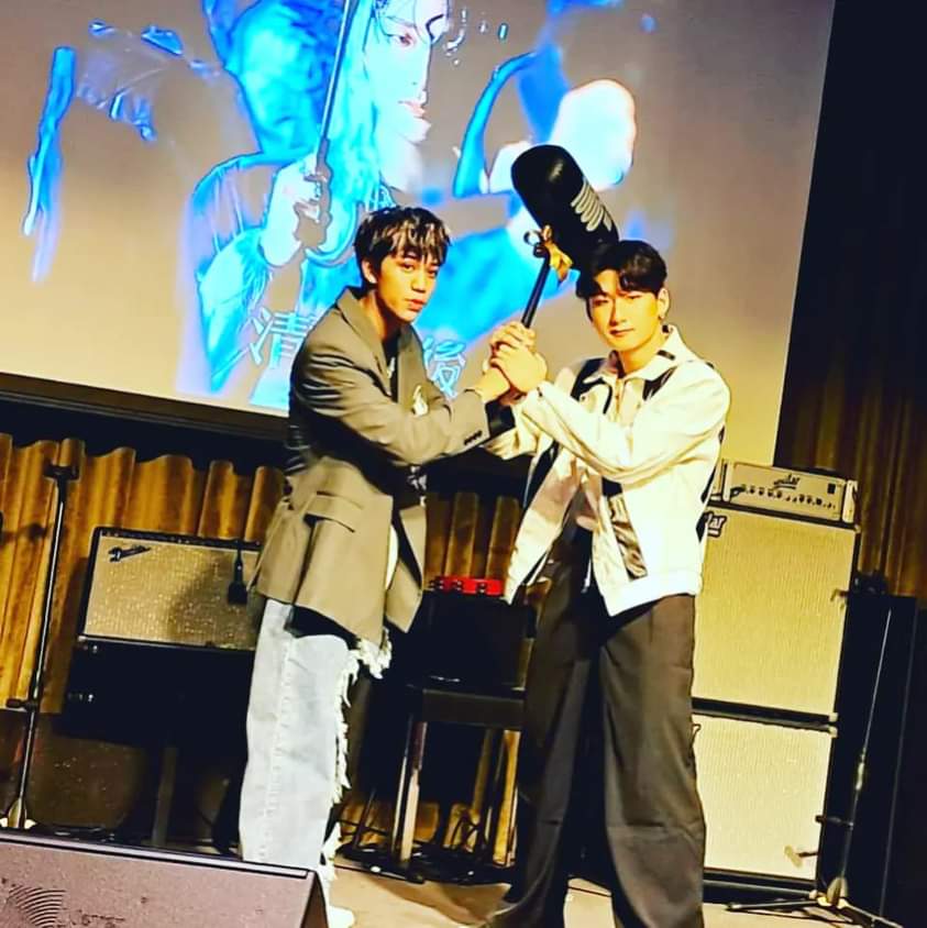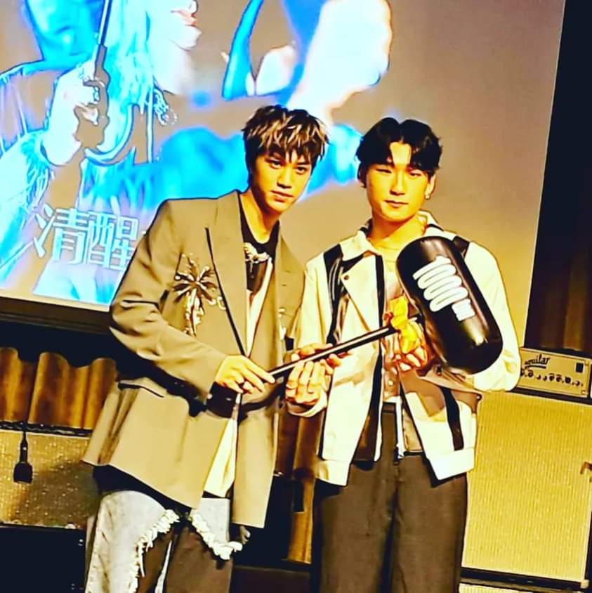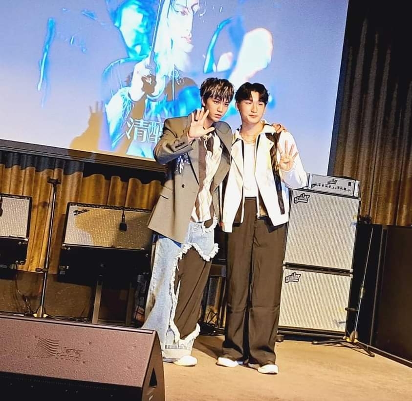 范范的發片記者會上,除了坤達、陳漢典、TORO、亦寬老師、黑澀會 ㄚ頭錄製影片打氣外,之前在《原子少年》的「戰友」-AcQUA源少年也全員錄製VCR為范范加油,其中成員李秉諭(貢丸) 還特別抽空到場為范范站台,足見兩人的好交情!互稱「同學」的兩人其實是高中同學,進節目後開始變熟稔的兩人不僅是戰友也是吐露心事的好友,恰巧最進貢丸也發單曲,被問到是否會比較「良性競爭」?范范笑說:「完全不會!我們都會相互分享唱歌跟跳舞技巧!」被問到誰的異性緣比較好?范范立馬指貢丸說:「當然是他!社交能力強又陽光開朗,很會交朋友、跳舞又帥,很受女生喜歡!」,而貢丸則特別送上「打怪神槌」,希望藉由兩人都愛打電動的興趣,祝福范范能在未來闖歌壇之路過關斬將,闖出一片天!